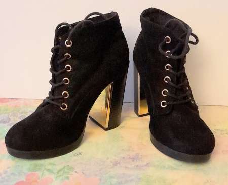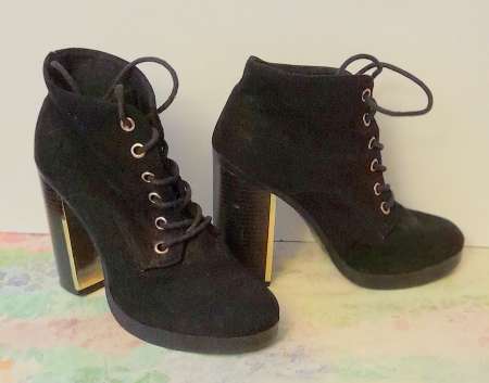 elegant   sexy   noir   pointure 38 5   tbe   portes 4 jours   talon couleur or   texture velours