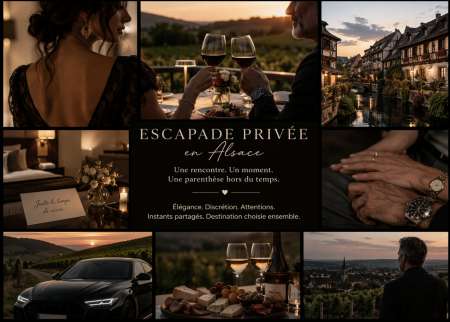Je vous propose un week-end privé et personnalisé pour une parenthèse simple et élégante. Homme de 48 ans, discret et à l écoute, propose un moment à deux hors du quotidien, adapté aux envies. Déplacements, routes à travers vignobles, destination choisie, dîner, hôtel et instants de détente organisés. L esprit repose sur le respect, la discrétion et attention aux détails. Expérience inspirée de l Alsace, adaptable et évolutive. Week-end du vendredi au dimanche, disponibilité limitée, échange préalable.